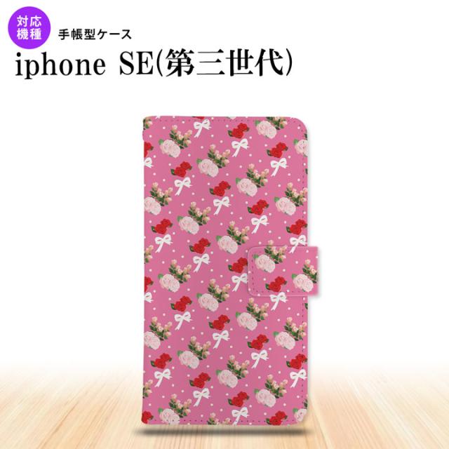 iPhoneSE3 iPhoneSE 第3世代 手帳型スマホケース カバー 花柄 バラ リボン ピンク ビビット nk-004s-ise3-dr262