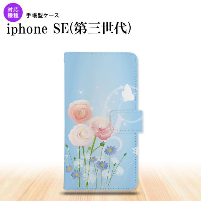 iPhoneSE3 iPhoneSE 第3世代 手帳型スマホケース カバー 花柄 ミックス 青 nk-004s-ise3-dr281