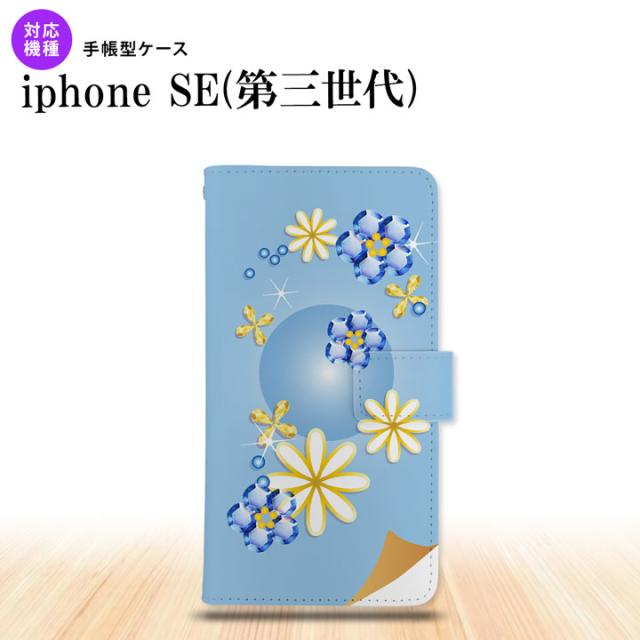 iPhoneSE3 iPhoneSE 第3世代 手帳型スマホケース カバー 花柄 ミックス 青 nk-004s-ise3-dr308