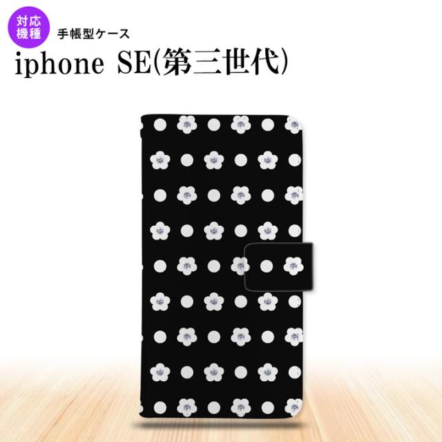 iPhoneSE3 iPhoneSE 第3世代 手帳型スマホケース カバー 花柄 ドット 黒 nk-004s-ise3-dr341