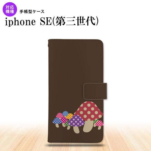 iPhoneSE3 iPhoneSE 第3世代 手帳型スマホケース カバー きのこ 茶 nk-004s-ise3-dr742