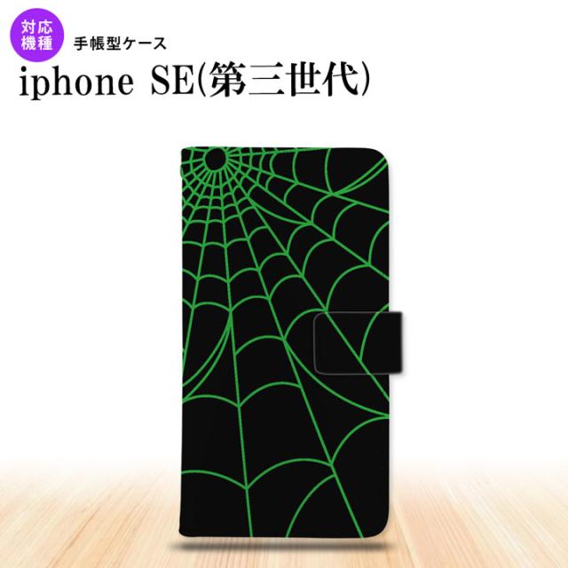 iPhoneSE3 iPhoneSE 第3世代 手帳型スマホケース カバー 蜘蛛 巣 緑 nk-004s-ise3-dr936