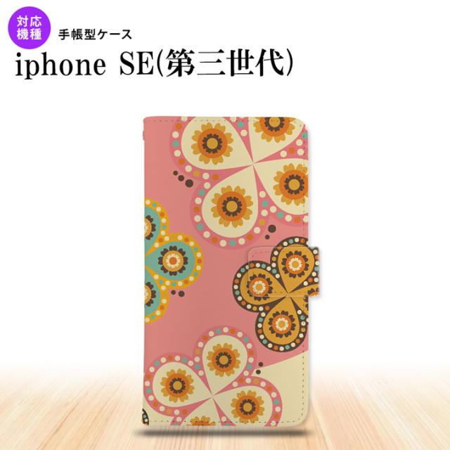 iPhoneSE3 iPhoneSE 第3世代 手帳型スマホケース カバー エスニック 花柄 ピンク ベージュ nk-004s-ise3-dr1582