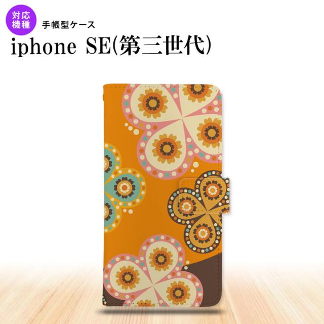 iPhoneSE3 iPhoneSE 第3世代 手帳型スマホケース カバー エスニック 花柄 オレンジ 茶 nk-004s-ise3-dr1584