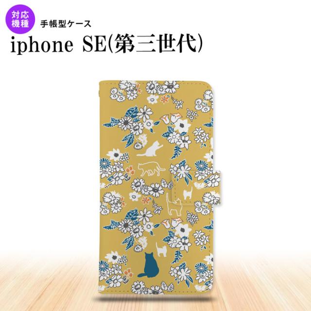iPhoneSE3 iPhoneSE 第3世代 手帳型スマホケース カバー 猫 花 黄 nk-004s-ise3-dr1721