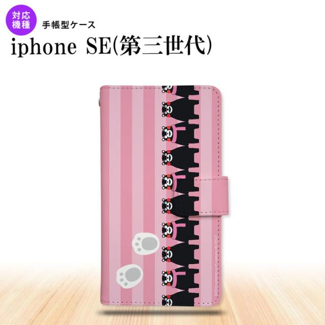 iPhoneSE3 iPhoneSE 第3世代 手帳型スマホケース カバー くまモン ストライプ ピンク nk-004s-ise3-drkm11