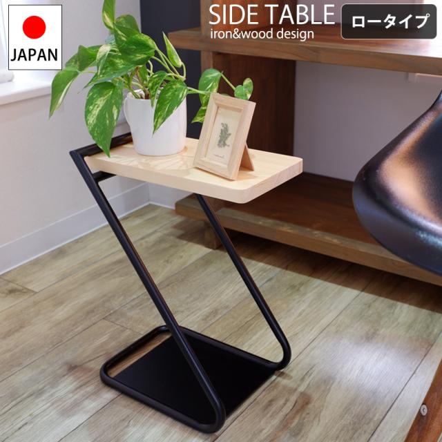 アイアン×ウッド サイドテーブル ロータイプ 【送料無料】 おしゃれ 高さ40cm 低め 北欧 木製 天板 アイアン フレーム モダン ソファー ベッドサイド コンパクト インテリア