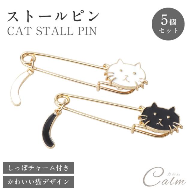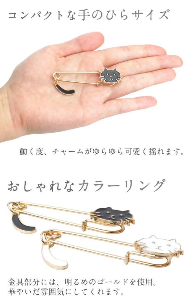ストールピン 猫 キルトピン スカーフ留め スカーフピン ズレ防止 黒猫 白猫 おしゃれ かわいい ねこグッズキャット チャーム付き プレゼント ギフト
