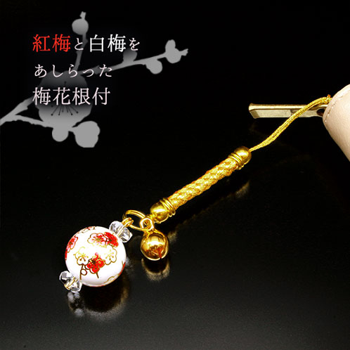 梅花・幸運招来根付 ストラップ 携帯 財布 iphone 鍵 カギ 鈴付き 紛失防止 梅花 花 かわいい レディース ピンク ホワイト ゴールド 招福パワー 開運ストラップ 日本製 国内産 国産品