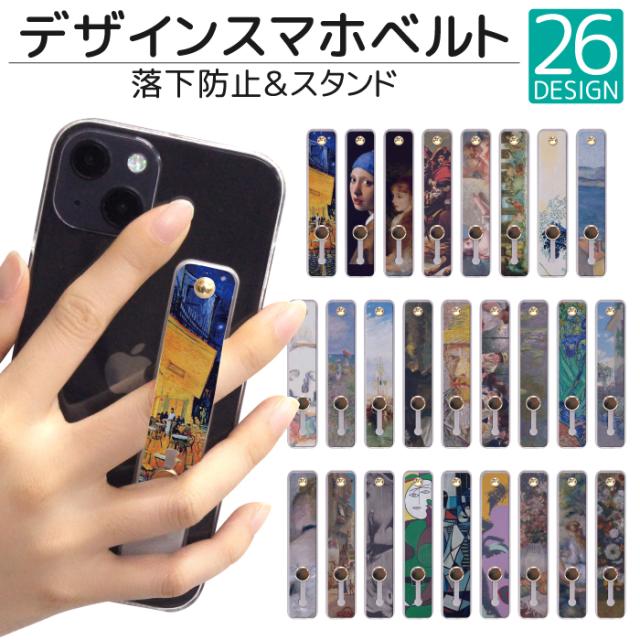 指を通してしっかりホールドできる落下防止スマホバンド(スマホベルト)。便利なバンドはスマホスタンドとしても使えます。自分の好きなデザインで自由にコーディネート♪