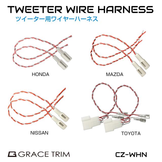 オーディオハーネス ツイーター ハーネス 変換 TOYOTA NISSAN HONDA MAZDA トヨタ 日産 ホンダ マツダ コネクタ コネクター カスタム パーツ ドレスアップ 音楽 ラジオ テレビ ツイーター用 ワイヤーハーネス 2個セット 全4メーカータイプ CZ-WHN メール便(ネコポス)送料無料