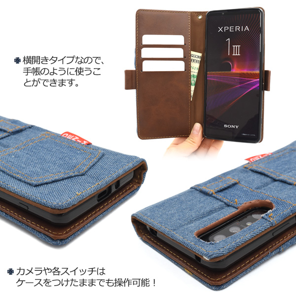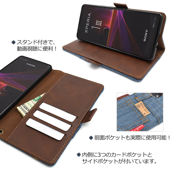 スマホケース Xperia 1 III SO-51B SOG03 A101SO用 手帳型 ジーンズデザイン 携帯ケース 装着簡単 デニムケース スマホカバー 携帯カバー お洒落 denimケース オシャレ シンプル かわいい コンサバ スタイリッシュ オーソドックス auスマホ