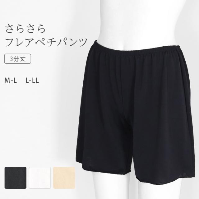 特徴:さらさら生地の3分丈フレアペチパンツです。