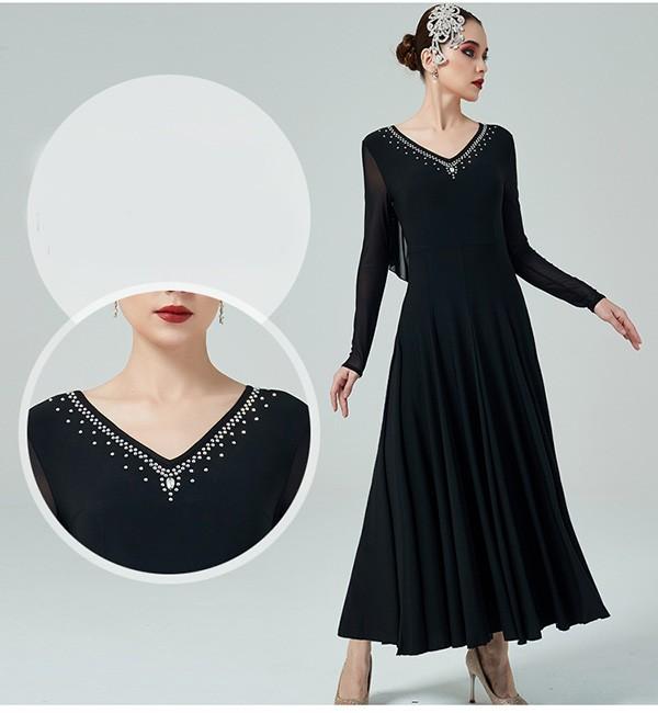 【送料無料】社交ダンスドレス 広がる裾 競技用ドレス ダンス衣装 ダンスウェア ステージ衣装 大きいサイズ カラオケ スタンダード ドレス ワルツ ワンピースドレス 舞台 演奏会 発表会ドレス パーティー デモ 衣装 ブラック レッド