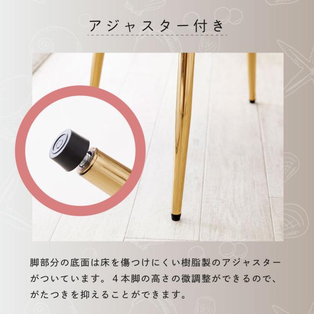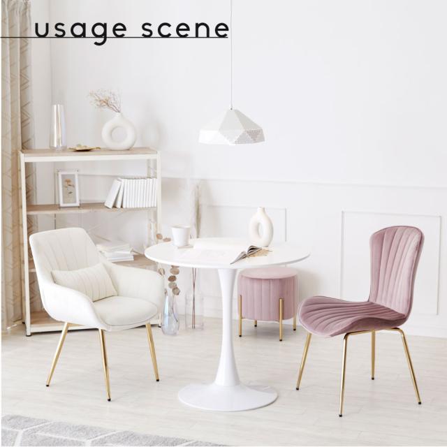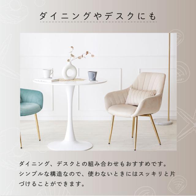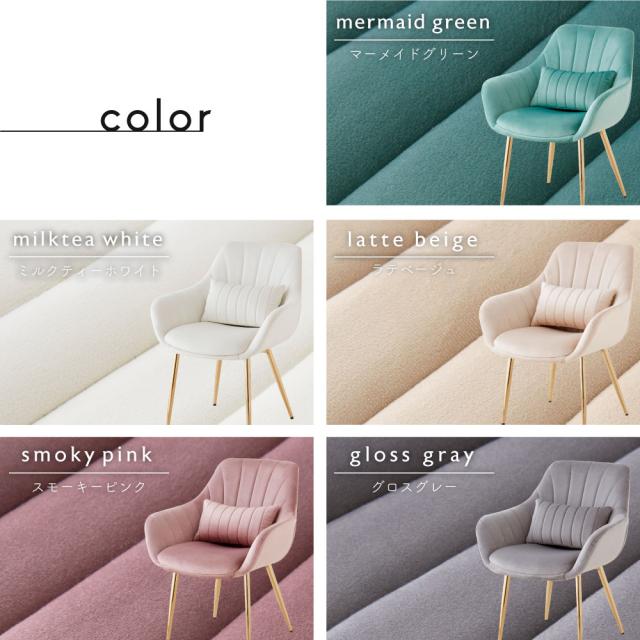 ■商品説明:人気のくすみカラーが大人かわいい金脚(ゴールド脚)チェアです。ダイニングチェアだけでなく、デスクチェア、メイク用チェアとしてもおすすめです。独特の曲線が体にフィットして疲れにくい。ベロア生地で肌触りもよく、女性に人気のデザイン。サロンや飲食店など、法人の方・ショップ用としてもご好評です。