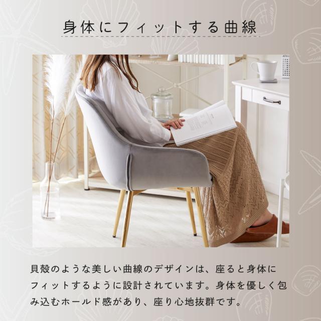 ダイニングチェア デスクチェア 椅子 オフィスチェア パソコンチェア ベロア調 ダイニング エレガント おしゃれ かわいい チェア 白 ホワイト 韓国風 インテリア ピンク グレー 貝殻 シェル 学習 椅子 イス 子供 学習イス PCチェア アシェル ASHEL jelly 4legs