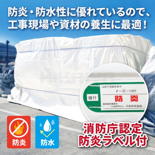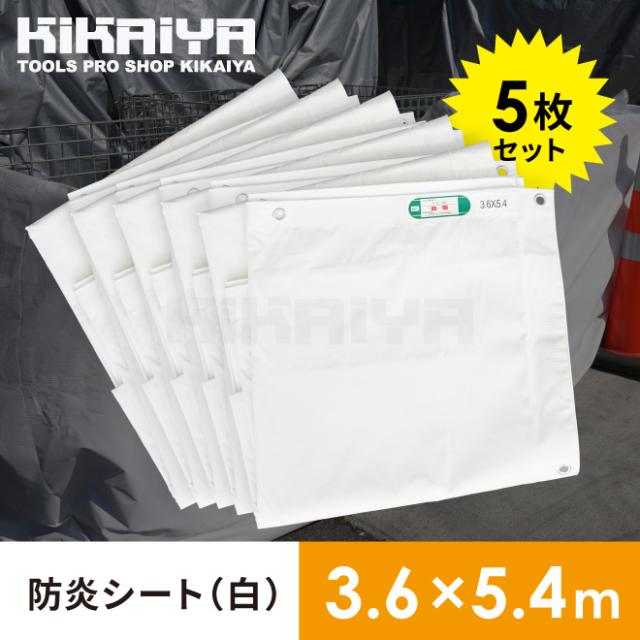 防炎シート 白 3.6×5.4m 5枚セット 養生 シート 資材 建設 工事 野積み カバー 間仕切り ハトメ付き 雨除け 日除け KIKAIYA