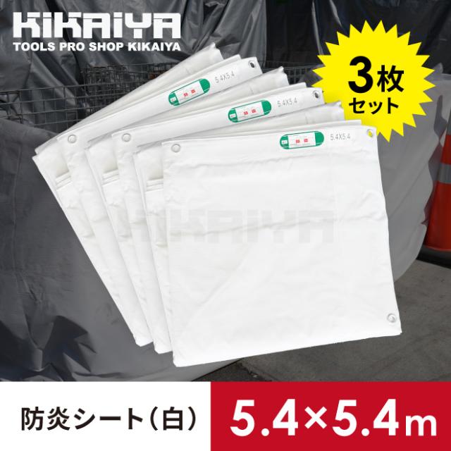 防炎シート 白 5.4×5.4m 3枚セット 養生 シート 資材 建設 工事 野積み カバー 間仕切り ハトメ付き 雨除け 日除け KIKAIYA