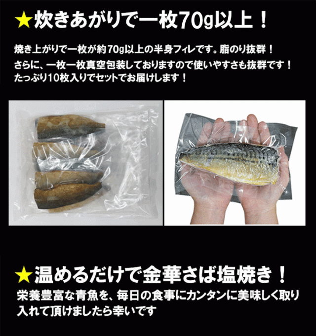 レンジや湯煎で温めるだけ 金華さば塩焼き 10枚セット お手軽調理 鯖 サバ 魚介 お魚 惣菜 お弁当 冷凍食品