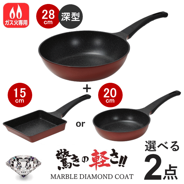 フライパン セット 深型 2点 Eセット 28cm 20cm 玉子焼き ガス火 選べる フライパンセット 卵焼き器 卵焼き 深い 炒め鍋 いため鍋 中華鍋 20センチ 18センチ 28センチ 大型 大容量 卵焼き器 卵焼き PFOA PFOS フリー EX