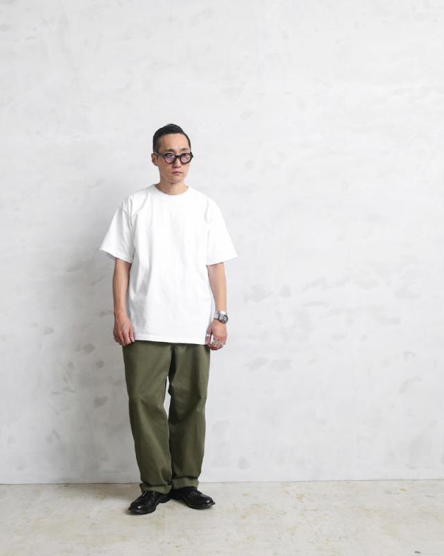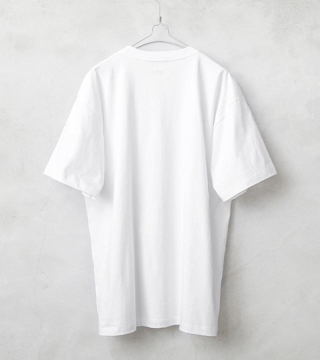 生地には肌さわりもよく程よい厚みのコットン100%を使用。洗えば洗うほど肌に馴染んでいきます。また名前の通りタフなつくりになっているので、首回りが伸びにくく耐久性も優れてます。タグは背中に違和感を与えないため熱転写でプリントしたTAGLESS(タグレス)仕様、そして脇に縫い目のない丸胴編みになっているので肌アタリを軽減したストレスフリーな着心地です。