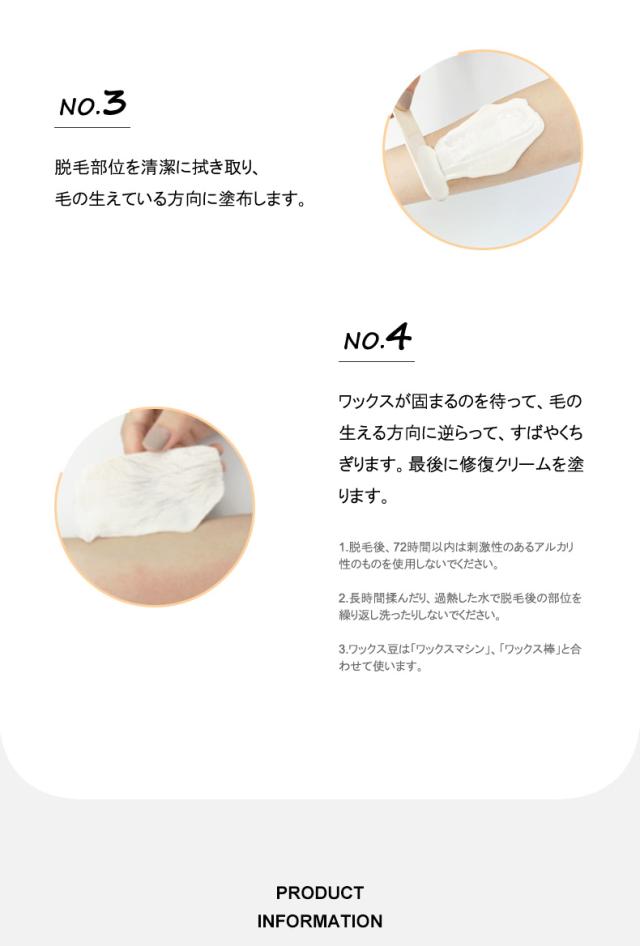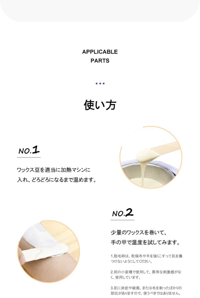 ●加熱しすぎたワックスを使用すると、肌が赤くなったり火傷をするおそれがあります。