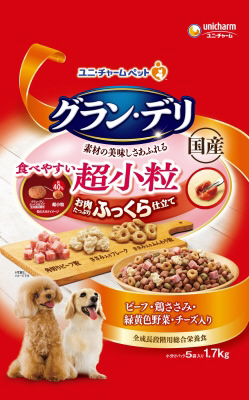 ・口の小さなワンちゃんでも食べやすい超小粒タイプ ※粒の大きさ約40%(グラン・デリふっくら仕立て全成長段階用比) ・総合栄養食 ・国産のお肉たっぷり ・ふっくら仕立て ・小分けパックタイプ