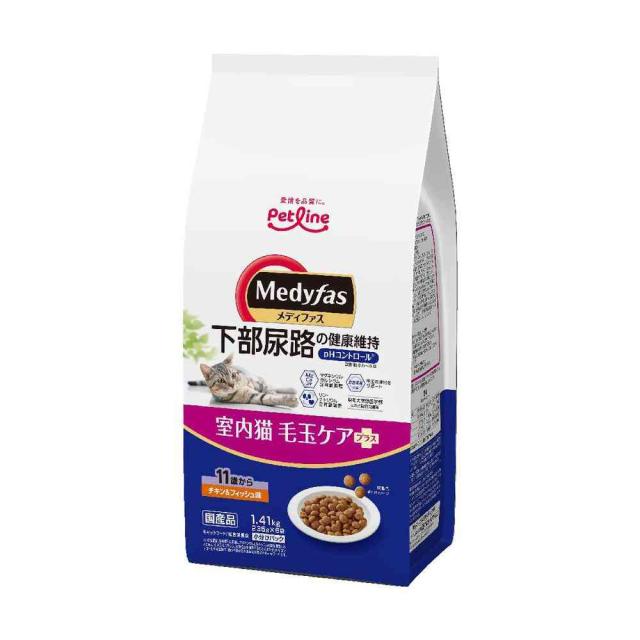 | 商品名(製品名) | メディファス 室内猫 毛玉ケアプラス 11歳から チキン&フィッシュ味1.41kg(235g×6) |