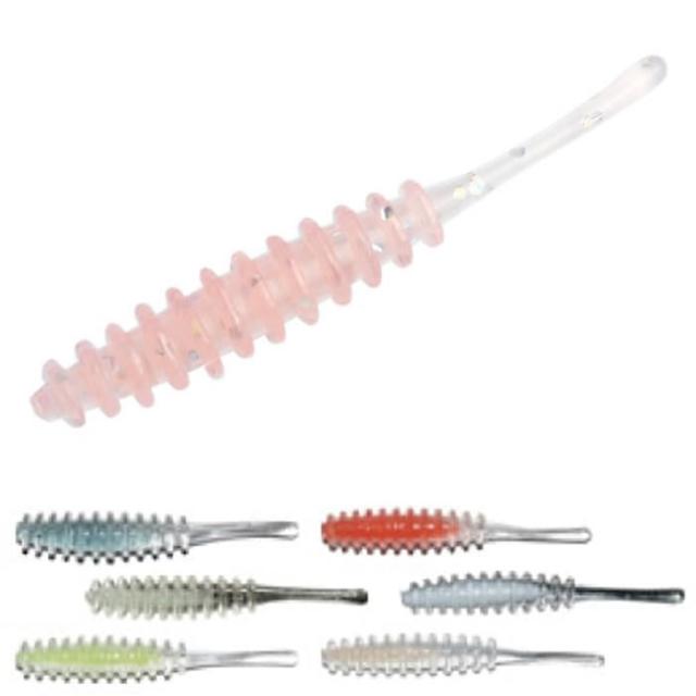 ●ひとくちサイズのリングボディと逆テーパー形状ピンテールの波動でアジをバイトに誘います。