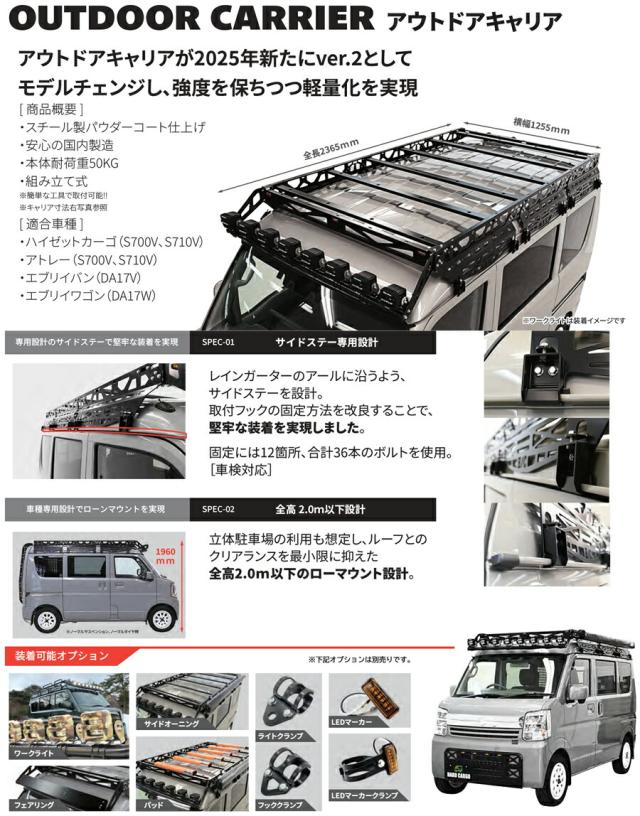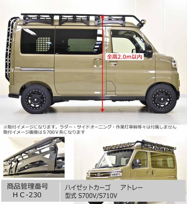 ハードカーゴ アウトドアキャリア フラットキャリア(バン専用) ダイハツ ハイゼットカーゴ アトレー(S700V S710V) 軽ハコ用 軽バン用 ルーフキャリア カスタム パーツ HARD CARGO HC-230