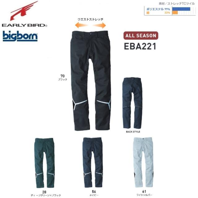 ビッグボーン EBA221 ノータックパンツ 70〜120 EARLYBIRD(すそ直しできます)