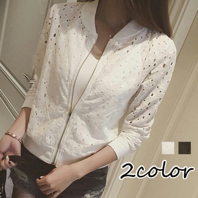 ブルゾン ジャンパー レディース 婦人服 アウター ジャケット 羽織り 総レース 花柄レース おしゃれ かわいい ジップアップ