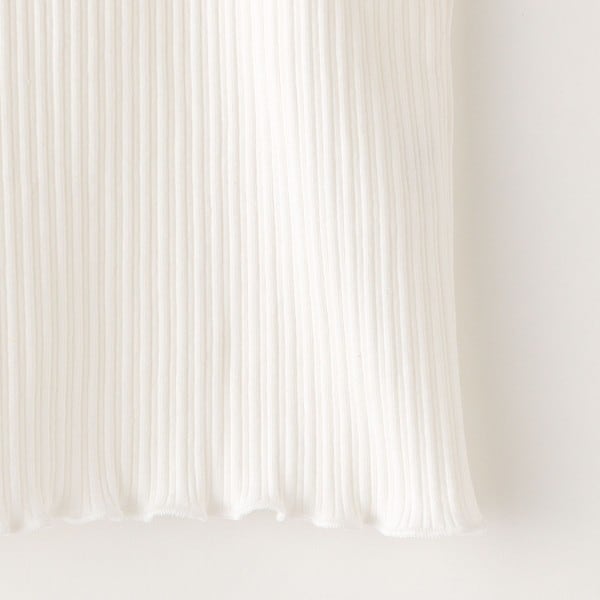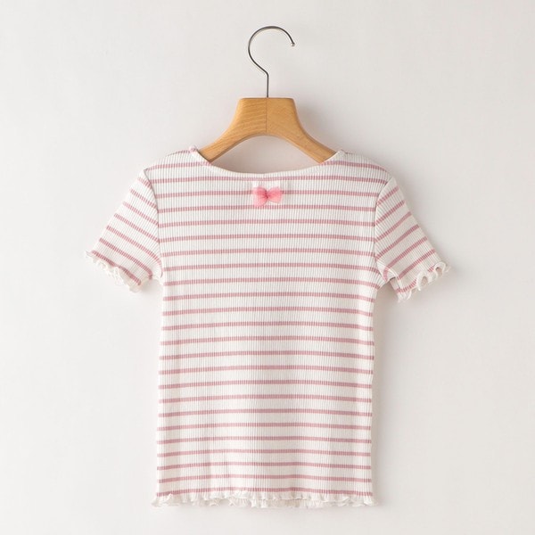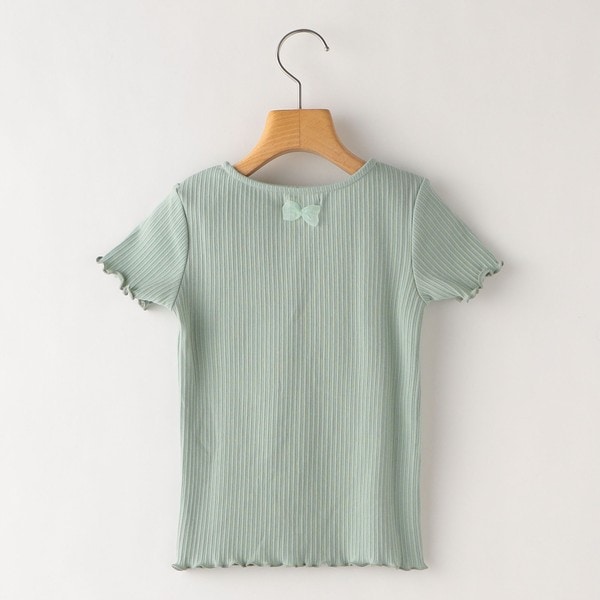 袖口と裾のフリルのようなデザインが可愛らしいリブTEEシャツ。