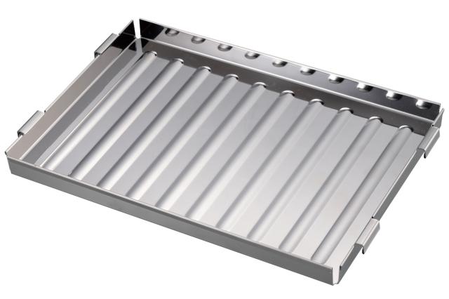 スマートグリルB5型専用の炭受けです。炭受けは、細かくなった炭や料理の油を受け止めてくれるため、片付けがしやすくなります。頻繁に使う道具は定期的な部品交換が必要となりますので、交換用のパーツとしてお持ちいただくと安心です。