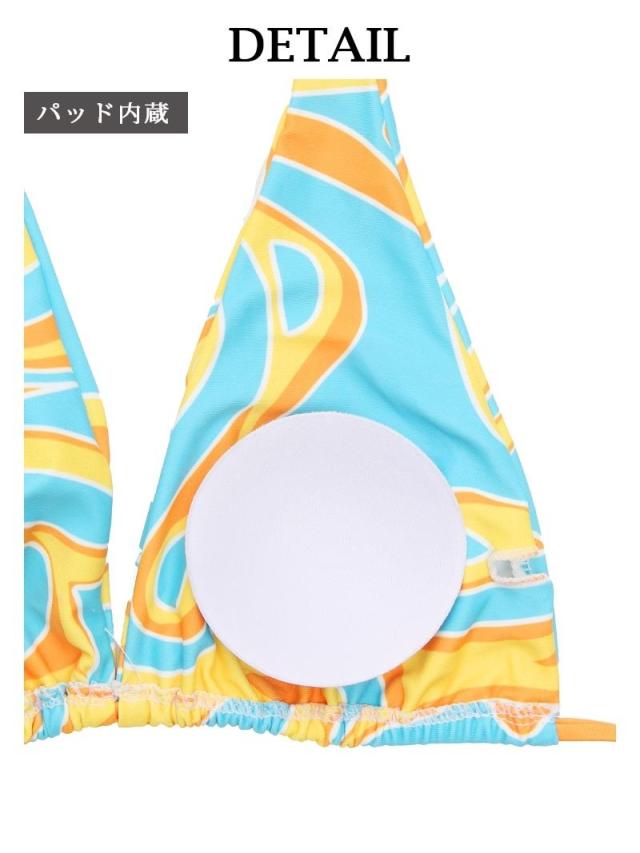 ☆サイケデリックな絵柄が個性的でギャルカワな2点セットビキニはホルターネックタイプだからバストもしっかり盛れて、