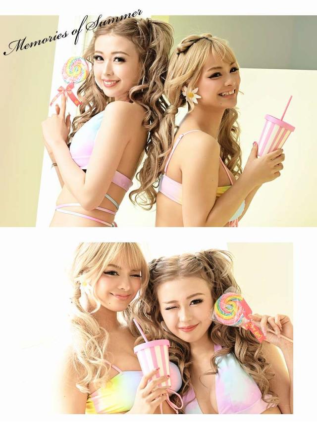 ☆淡い色使いのタイダイ柄がかわいいレディースビキニ♪