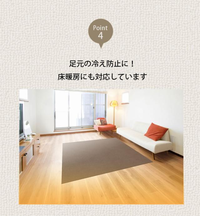 また、このマットは洗濯機で洗えるため、いつでも清潔を保つことができます。消臭効果もあり、ペットのいるお家にも最適です。さらに、床暖房にも対応しており、冷える季節でも暖かく快適に過ごせます。