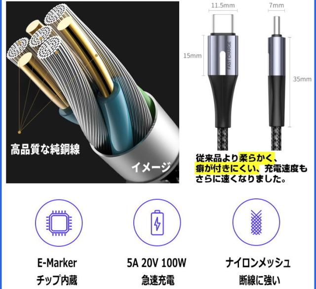 ■usb type−c ケーブル PD充電 急速充電ケーブル 5A 20V 100W