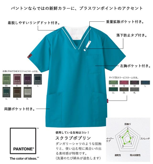 スクラブ 白衣 医療 ナース 看護師 医療用 FOLK PANTONE ユニフォーム シンプル おしゃれ メディカル スクラブ 【送料無料】レディース メンズ 男女兼用 男性 女性 半袖 医師 介護師 病院 クリニック 薬局 歯科 エステ 制服 薬剤師 agesugi_snk