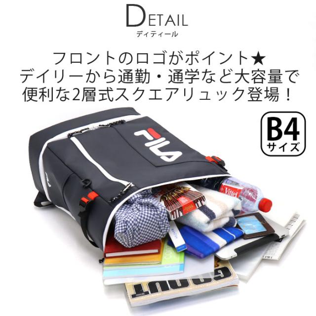 フィラ リュック FILA メンズ レディース 大容量 リュックサック スクエア デイパック バックパック 通学 通学用 B4 A4 2ルーム スクエアリュック 35L 男女兼用 中学生 高校生 部活 学生 男の子 女の子 男子 女子 丈夫 PC タブレット ブラック ネイビー 7763
