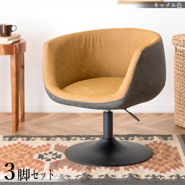 昇降回転式ダイニングチェア 【3脚セット】キャメル色/2色 合成皮革 スチール脚 幅60×奥行き52×高さ64〜72cm座面高/37〜44cm EPN-PC-CM 北欧 カジュアル 組み立て商品 回転チェア パーソナルチェア 店舗用にも