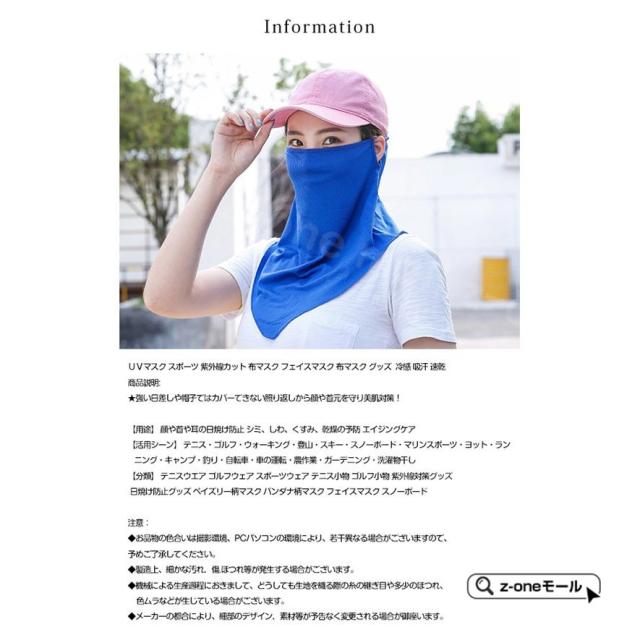 【商品説明】強い日差しや帽子ではカバーできない照り返しから顔や首元を守る◎※生産の関係により写真と色、柄が若干異なる場合があります。※商品は縫製上の細かいほつれ、汚れ、素材特有の臭いや接着剤等の臭いが残っている場合がございますので、気になるお客様はご購入をお控え下さい。素材:ポリエステル