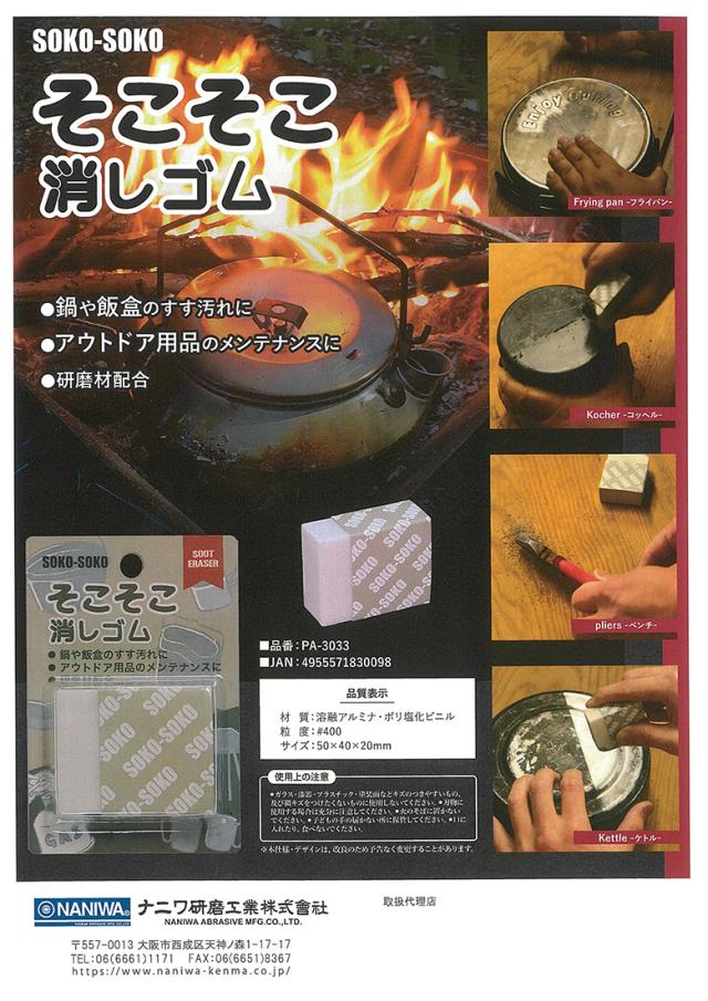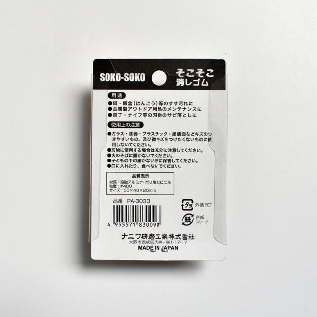 【メール便】そこそこ消しゴム PA-3033 汚れ落とし サビ取り サビ落とし 錆び落とし 錆び取り さび 刃物 金物 鍋 コンロ 包丁 ナイフ クリーナー キャンプ アウトドア ナニワ