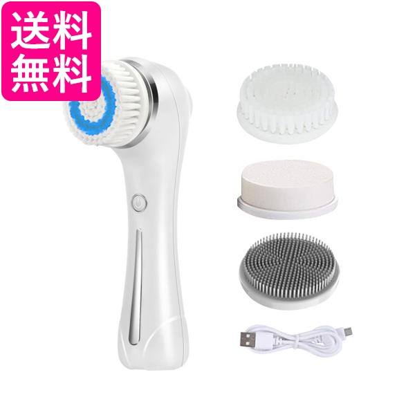 電動洗顔ブラシ 超音波振動 洗顔器 美顔器 黒ずみ 毛穴 EMS微電流 極細毛 IPX7防水 角質 柔軟 毛質 ボディ 回転式 ホワイト (管理S) 送料無料