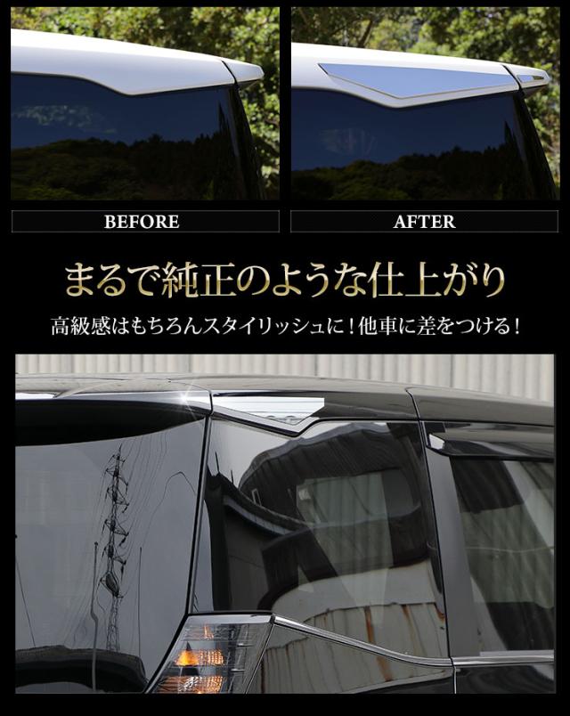 エクステリアに高級感をプラスして、ワンランク上のドレスアップを手に入れられます! 実際に車両に取り付け、何度も微調整を行い商品化しているのでフィッティングはバッチリ。 経験豊富な専任スタッフが一から制作しているので他社製品にはないデザイン・仕上がりをお届けいたします! 届いた時点で強力両面テープがメッキ裏面についておりますので、あとは取り付け箇所をしっかり脱脂して貼り付けるだけでOKです! 必要に応じて付属のマスキングテープや両面テープを使用してください。 |
