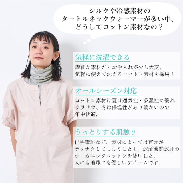 【メール便送料無料】 レディース オールシーズン 秋冬 冬用 春夏 薄手 コットン 綿100 デコルテ ネックカバー スヌード タートルネック ハイネック 肩付き 首カバー UVカット 冷え対策 傷隠し 防寒 | 日本製 CHARM オーガニックコットン タートル ネックウォーマー nw-oln