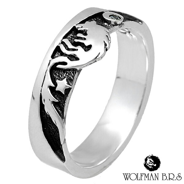 ウルフマン ムーンシャドウ ウルフ スモール リング 15〜19号 指輪 シルバーリング メンズ ウルフマンBRS 狼 オオカミ ブルートパーズ ブランド