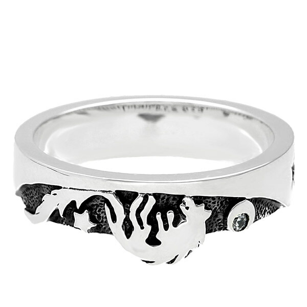 シルバーアクセサリー メンズアクセ スターリングシルバー シルバーリング 指輪 メンズリング ウルフマンB.R.S 狼 オオカミ 動物 生き物 シルエット 星 月 夜 シンプル ロック 天然石 トパーズ 青 ジルコニア