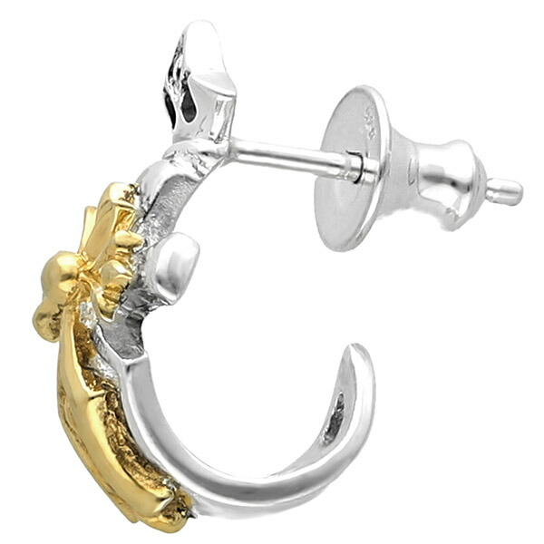 シルバーアクセサリー メンズアクセ スターリングシルバー スタッドピアス スタッズピアス シルバーピアス メンズピアス ウルフマンB.R.S 狼 オオカミ 百合 ユリ フレアクロス フレア リリー リリィ クロス 十字架 フープピアス ハーフフープ ゴールド 金色