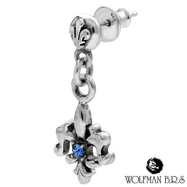 ウルフマン セイントフレア シルバー ピアス 1P 片耳用 ウルフマンBRS 百合 リリー フレア シルバーピアス ラインストーン ブルー 青 ブランド メンズ